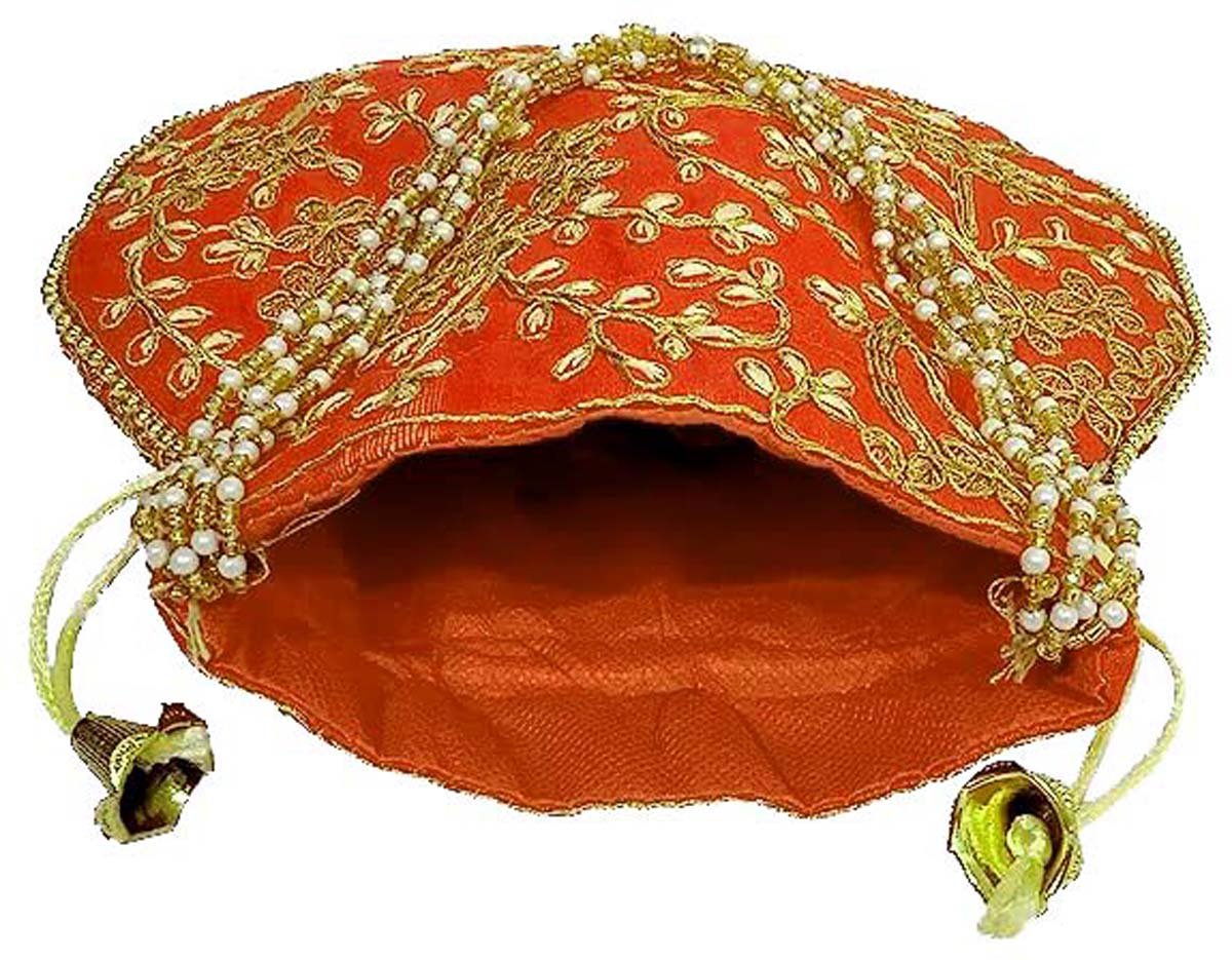Embroidered Silk Potli Bags-Orange