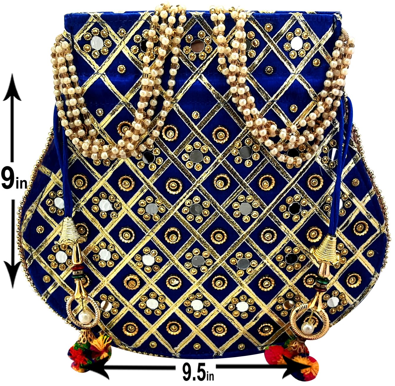 Rajasthani Style Gota Patti Silk Potli-Blue
